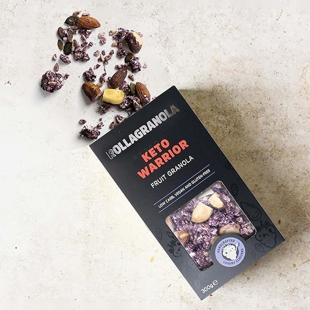 - GREAT TASTE: Our Keto Warrior granola takes its purple colour from real blackcurrants. Beautifully blended with Coconut Oil, Brazil Nuts, Almonds, Pumpkin Seeds and Sunflower Seeds, this granola doesn?t just tick all the boxes for those who follow a Keto Diet, but is great for anyone looking to cut down their carbs intake.