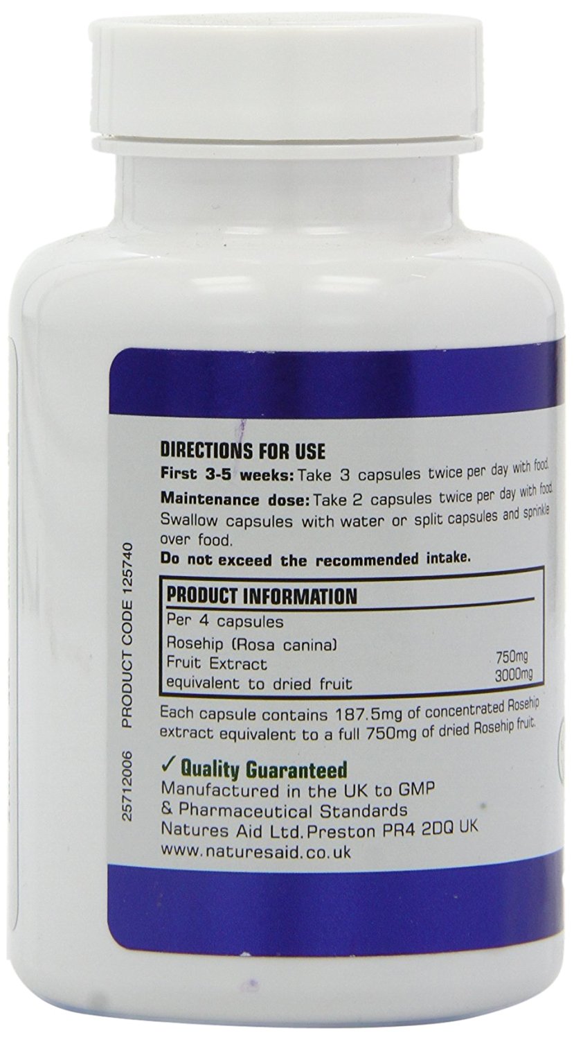 - Each capsule contains 187.5mg of concentrated rosehip extract