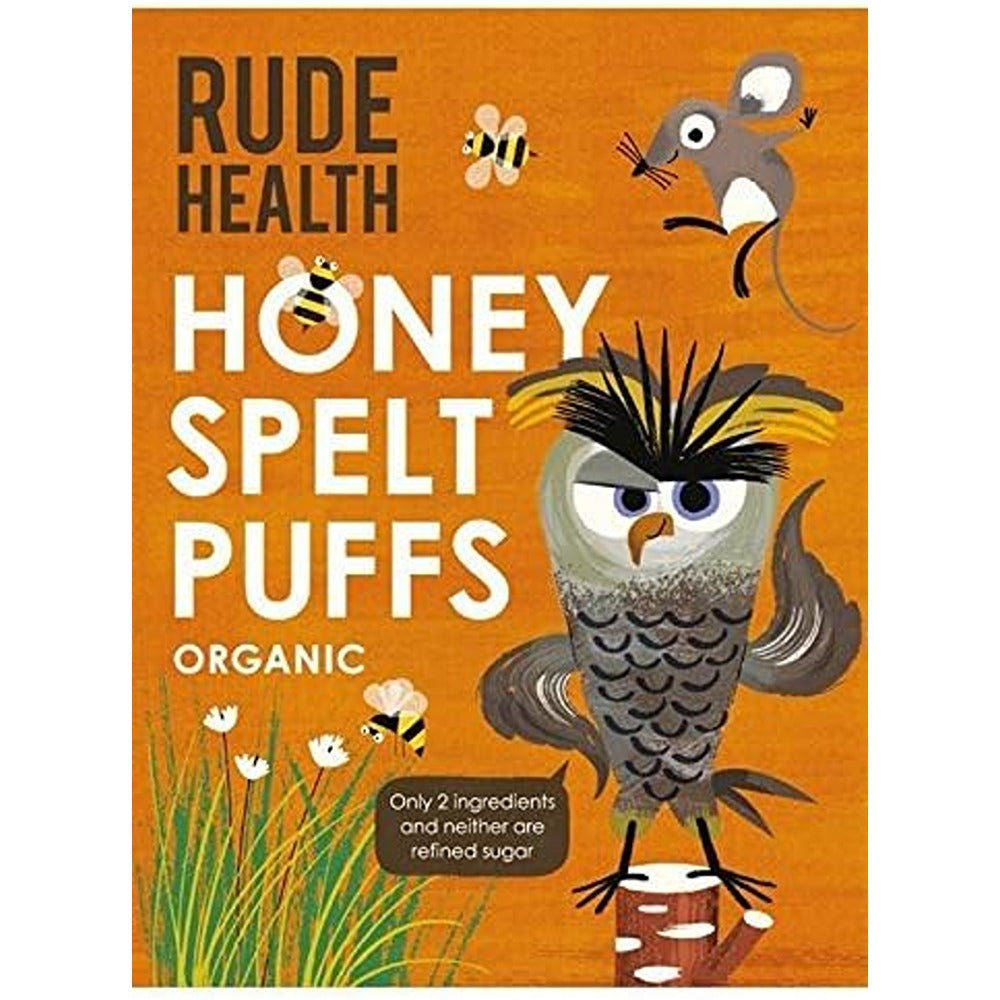Rude Health Organic Honey Spelt Puffs are floaty puffs, made of whole grains of spelt that are drizzled lightly with honey. Grains have not been extruded or mashed into unnatural shapes or textures. Perfect with milk or yoghurt and also a delicious snack when eaten dry. Made using only two ingredients, taste like a treat. Available in 175 g.