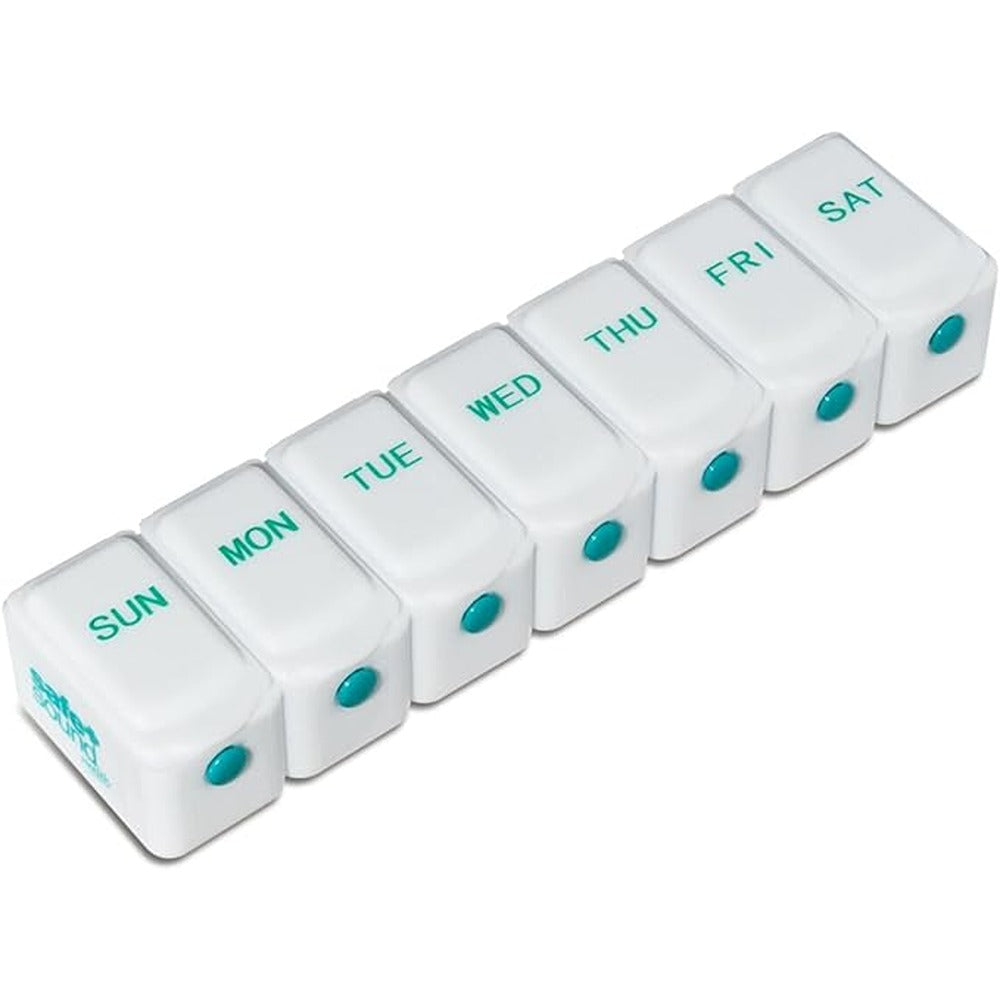 Safe and Sound Health 7-Day Jumbo Sized Push-button Pill Box is an ideal way of keeping track of daily medication and vitamins. Features 7 daily compartment each clearly printed with the day of the week. Easily opened with the push button release feature. Each compartment is curved so that the pills are easy to remove.