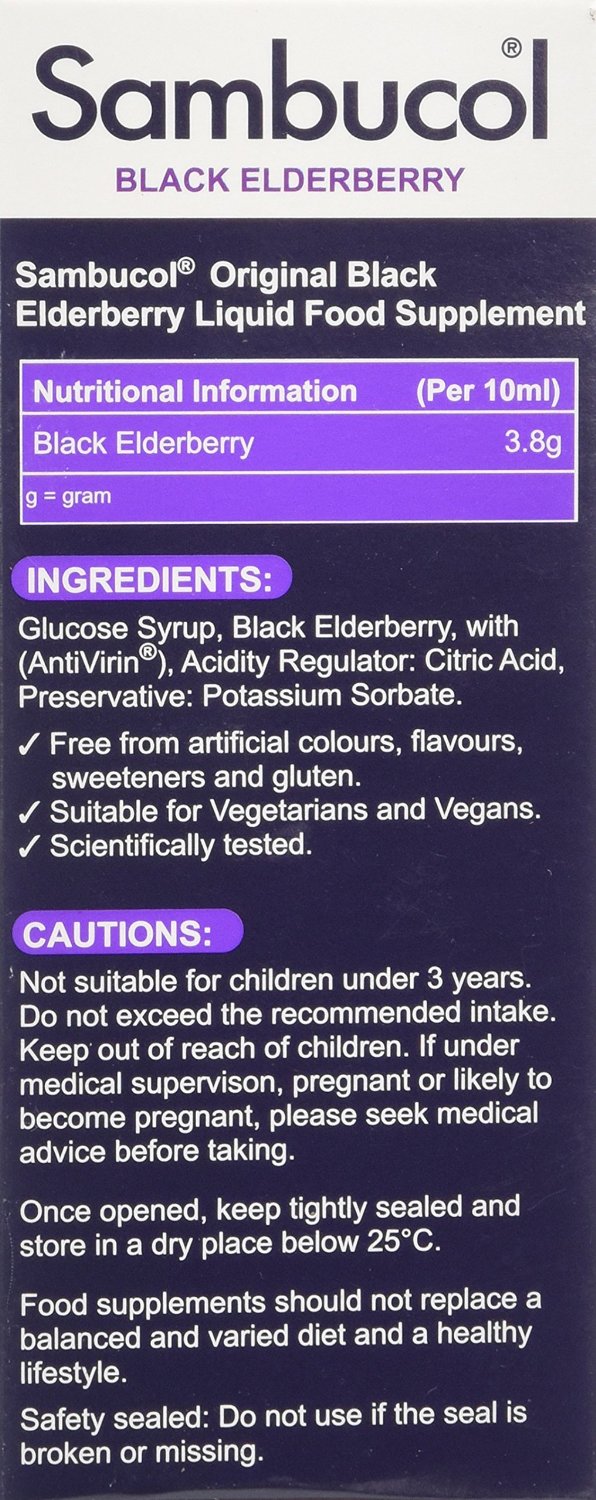 - FAMILY IMMUNE SUPPORT - Sambucol Original contains all the goodness of natural Black Elderberries, packed with antioxidants to help strengthen the immune system. Suitable for adults and children aged 3+