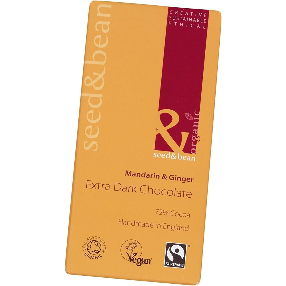 Seed & Bean Organic Extra Dark Mandarin Ginger Chocolate Bar 75g - 10 Pack