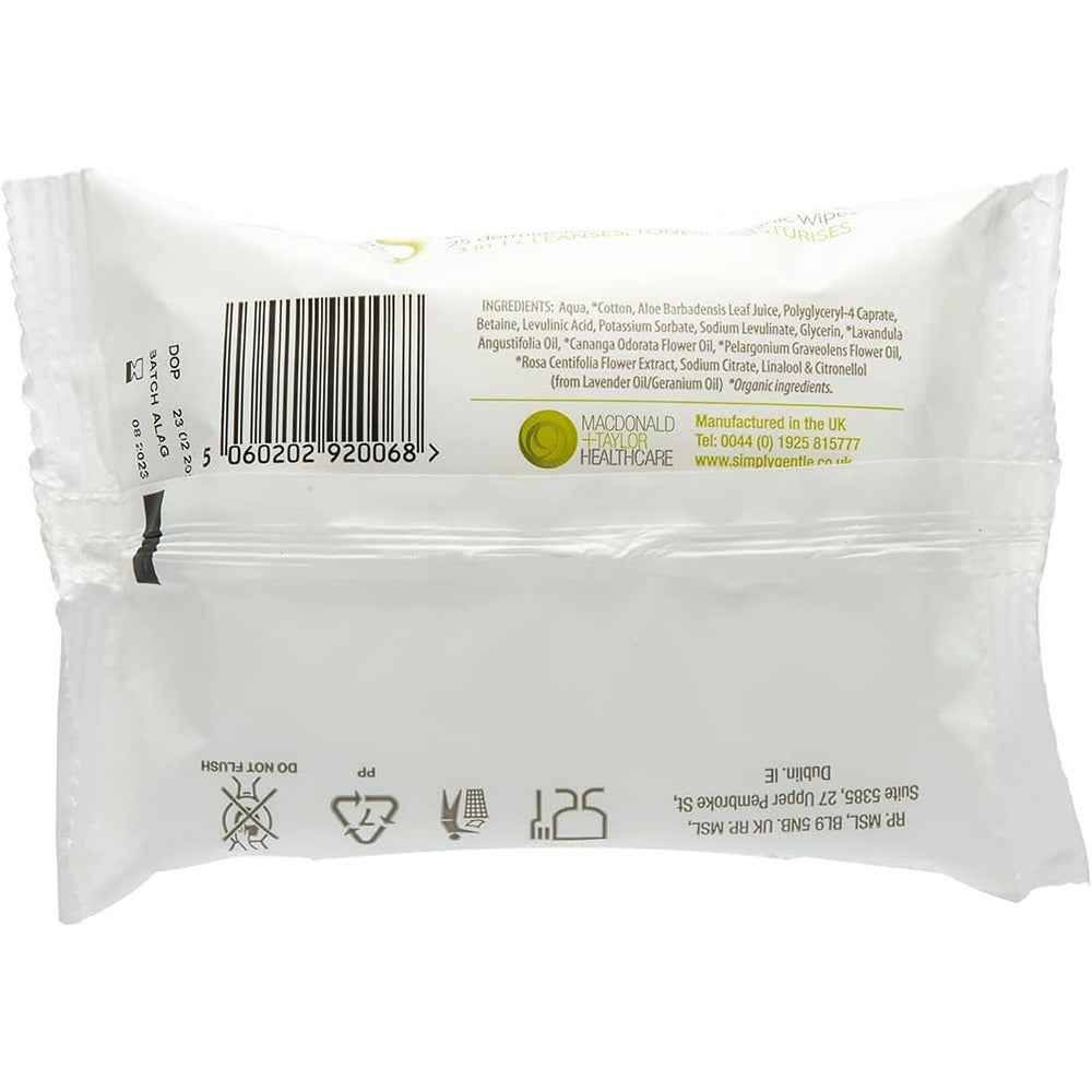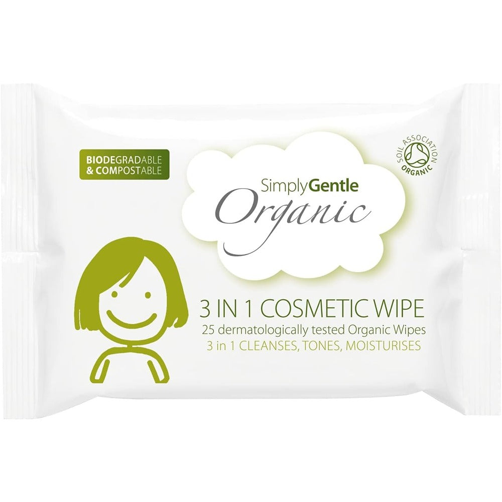 Simply Gentle 3-in-1 Cosmetic Wipes are dermatologically tested and made from 100 percent organic cotton. They have been formulated with a gentle lotion that cleanses, tones and moisturises. Soil Association approved. A soft and moist towel removes impurities from the skin, balances skin pH and moisturises gently. Ideal for sensitive skin. Each pack contains 25 wipes.