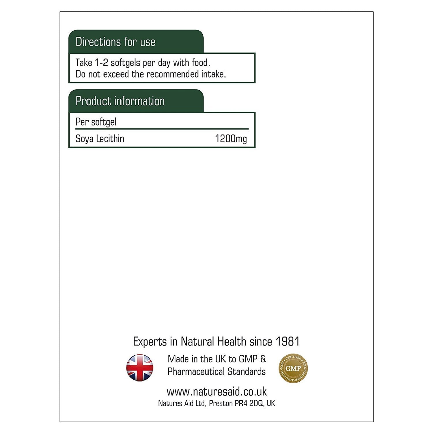 Natures Aid 1200mg Soya Lecithin can help improve brain and memory function as well as aide in arthritis relief. Plus, lecithin is known to help support your cardiovascular health. It is made from soya in contrast to an egg from which it can also be made. Soya lecithin is said to be nutritionally better since it contains a higher polyunsaturated to saturated fatty acid ration. Lecithin plays a role in heart, liver and nerve health and helps maintain healthy cholesterol metabolism. Pure lecithin is known as phosphatidylcholine but the term lecithin usually refers to a larger group of substances which include choline, inositol and free fatty acids. Free from artificial flavours, colours and preservatives.
