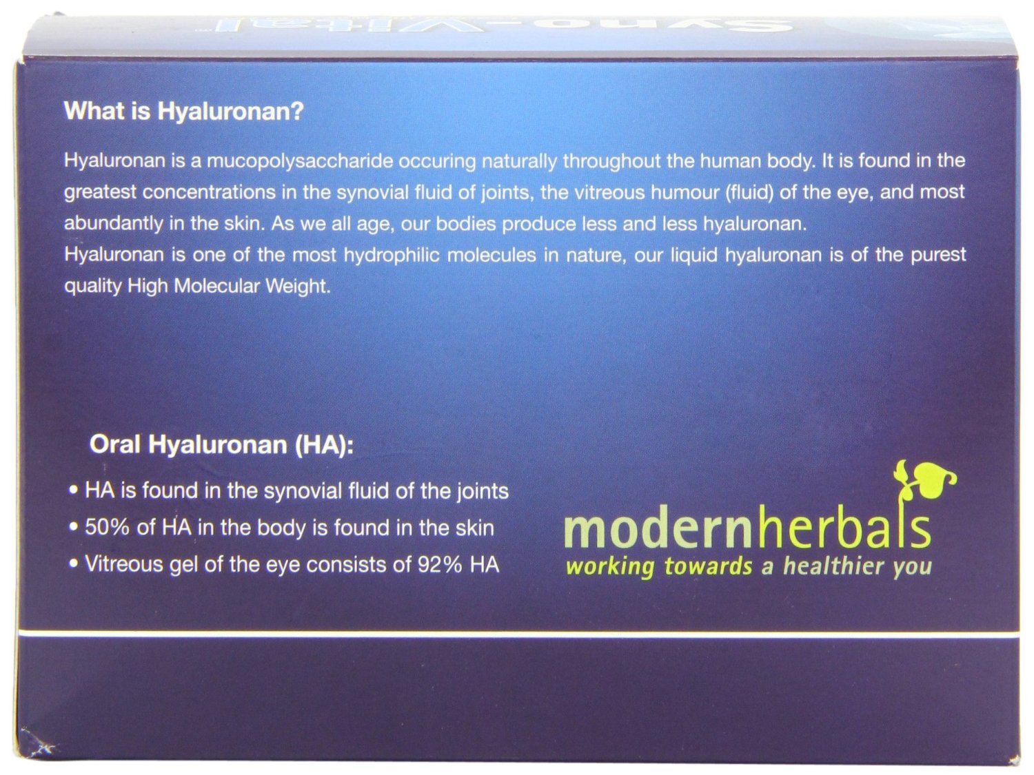 Hyaluronic acid is a natural component of the body. This acid is found in the synovial fluid of the joints for lubrication, the connective tissues, the vitreous humour fluid of the eye and most abundantly in the skin. It also plays a role in transporting nutrients to the body. Vitamin C contributes to normal collagen function of the cartilage. Available in 30 sachets of 5 ml each.