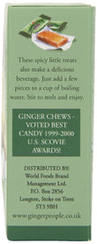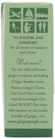 The Ginger People Gin Gins Original Chewy Ginger Candy is natural, stimulating and delicious. Given ginger's queasy-quelling properties, Gin Gins are great to ward off nausea while flying, boating or going on a bumpy road trip. Surprisingly and satisfyingly spicy. Every day can be special with a packet of Gin Gins in your pocket. Made with 10 percent fresh ginger, these spicy little luxuries can soothe your stomach and lift your mood. Gin Gins are like a hug in a mug. Melt a few pieces of this candy in boiling water to create a deliciously spicy ginger drink. Gin Gins gingery goodness will warm you from the end of your nose to the tips of your toes. This candy available in 84 grams.