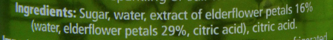 IngredientsSugar, Water, Extract of Elderflower Petals (16%) (Water, Elderflower Petals (29%), Citric Acid), Citric Acid.