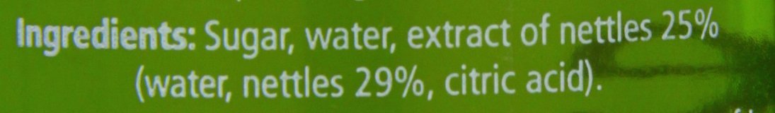 IngredientsSugar, Water, Extract of Nettles 20% (Water, Nettles 29%, Citric Acid).