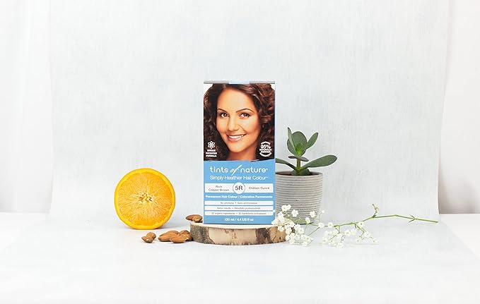 Tints of Nature Permanent Hair Colour is vegan-friendly and cruelty-free home hair dye. All of our permanent home hair colours contain the lowest possible levels of PPD and remain ammonia, paraben and resorcinol free. Gently nourish and protect your hair, provide maximum colour performance and up to 100 percent grey coverage and give long-lasting results. Available in 5R rich copper brown shade.