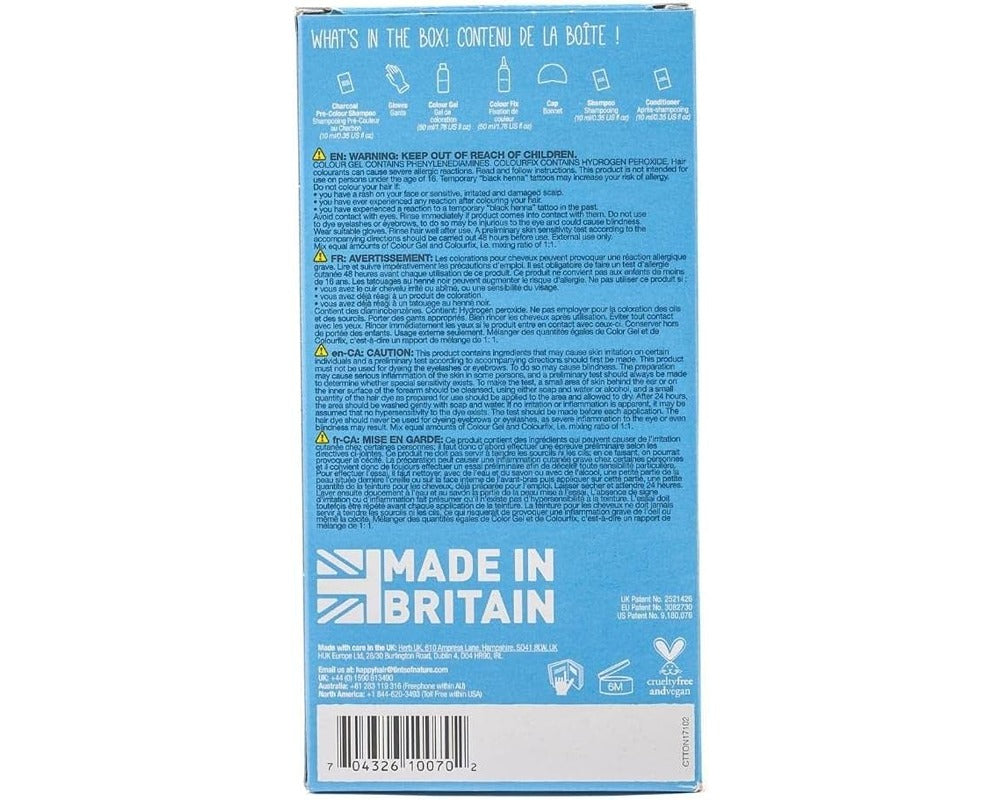 IngredientsCertified organic Comfrey Extract - well known for its soothing and healing properties. Certified organic Roman Chamomile Extract - the finest of all and rich in natural Azulin, renowned for its calming and healing properties. Certified organic Aloe Vera - to moisturise and cool the scalp during the process. Contains no ammonia or ammonia substitutes, and no animal products.