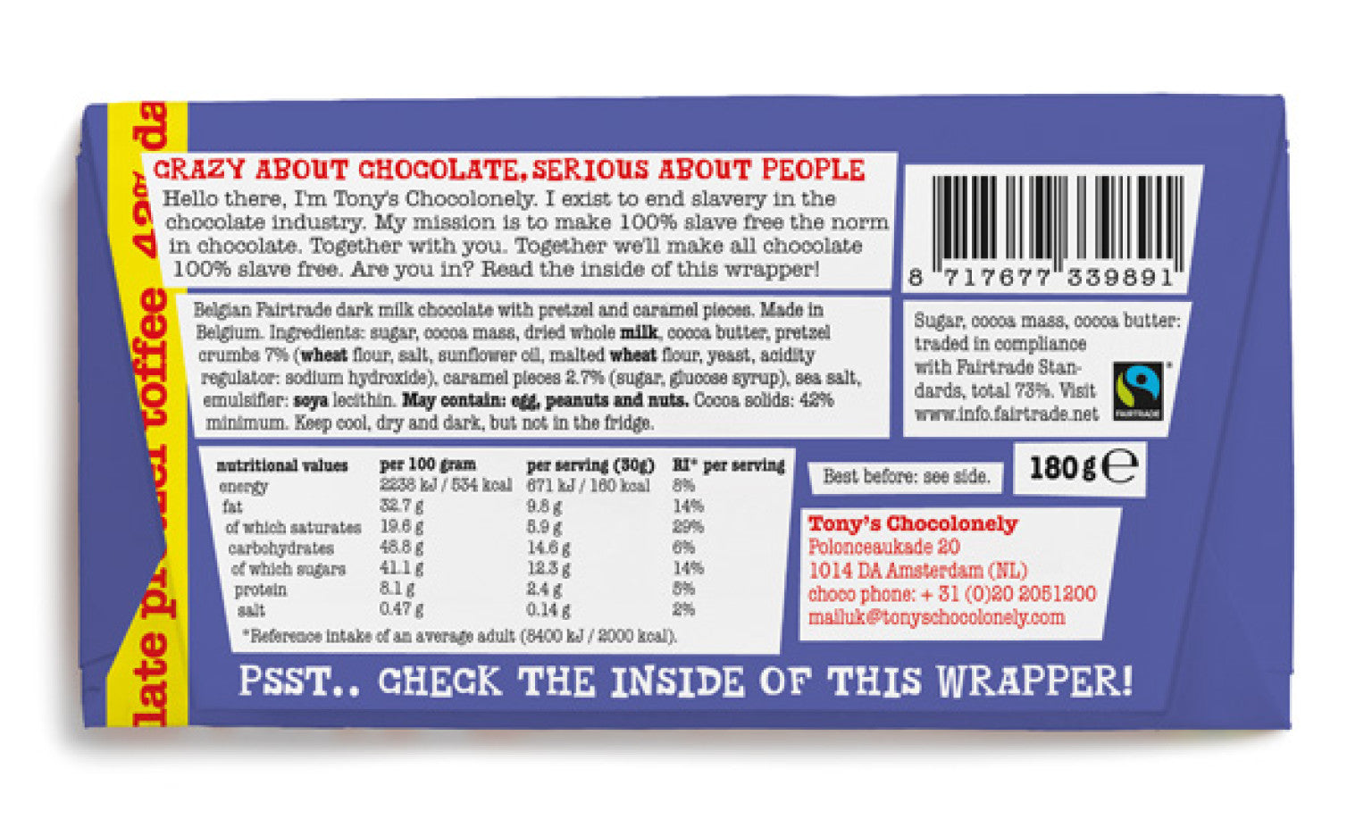 Tonys Chocolonely Dark Milk Pretzel Toffee Chocolate Bar 180g - 3 Pack