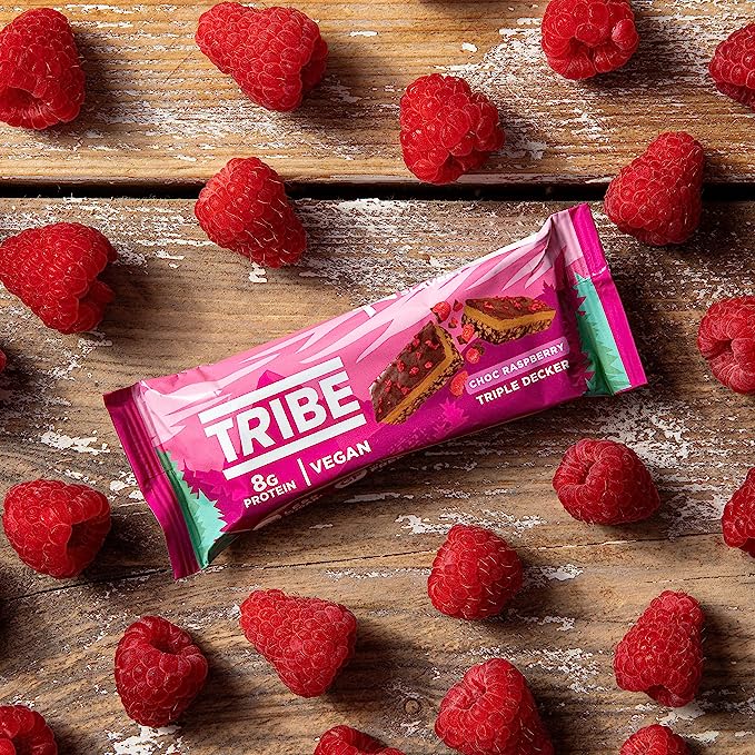 Tribe Vegan Chocolate Raspberry Plant Protein Bar- Vegan & GF (40g) - 12 Pack