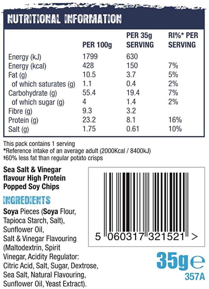 UFIT UFIT Crunchers High Protein Popped Chips - Sea Salt & Vinegar 35g - 18 Pack