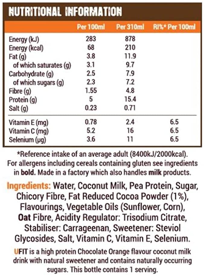UFIT UFIT High Protein Shake Drink - Vegan Chocolate Orange 310ml - 8 Pack