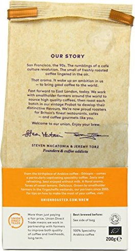 Union Roasted Coffee Organic Yirgacheffe Ethiopia Cafetiere Grind