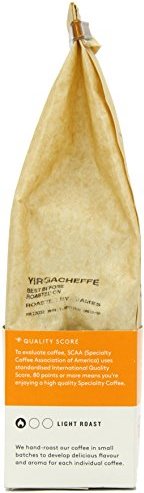 Organic. Great taste 2015. 100% speciality arabica coffee. Strength - light roast - 3.From the birthplace of Arabica coffee - Ethiopa - comes a particularly captivating speciality coffee. Zesty and refreshing, best enjoyed without milk. A floral aroma. Tones of sweet lemons. Delicious. Grown by smallholder farmers in the Yirgacheffe wetlands, our partners since 2003. Notes of kumquat and peach We hand-roast our coffee in small batches to develop delicious flavour and aroma for each individual coffee.