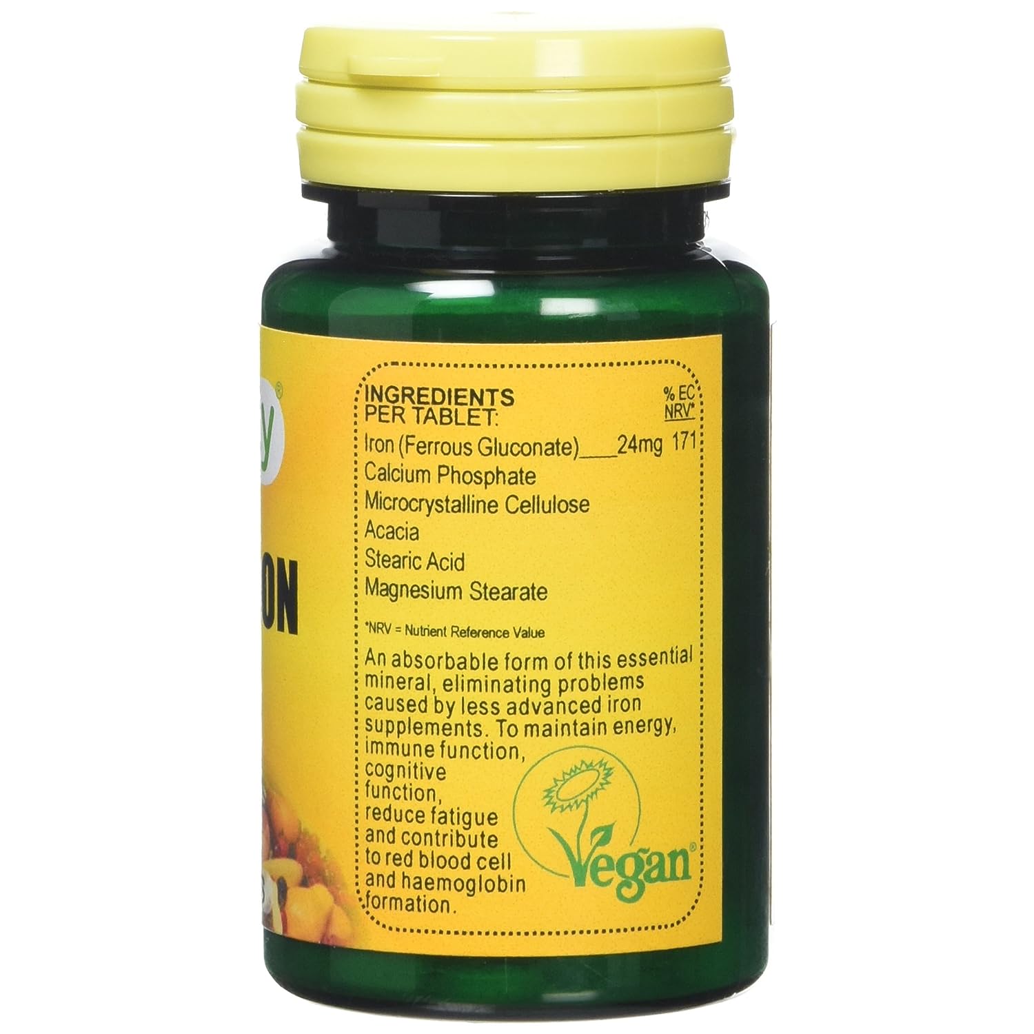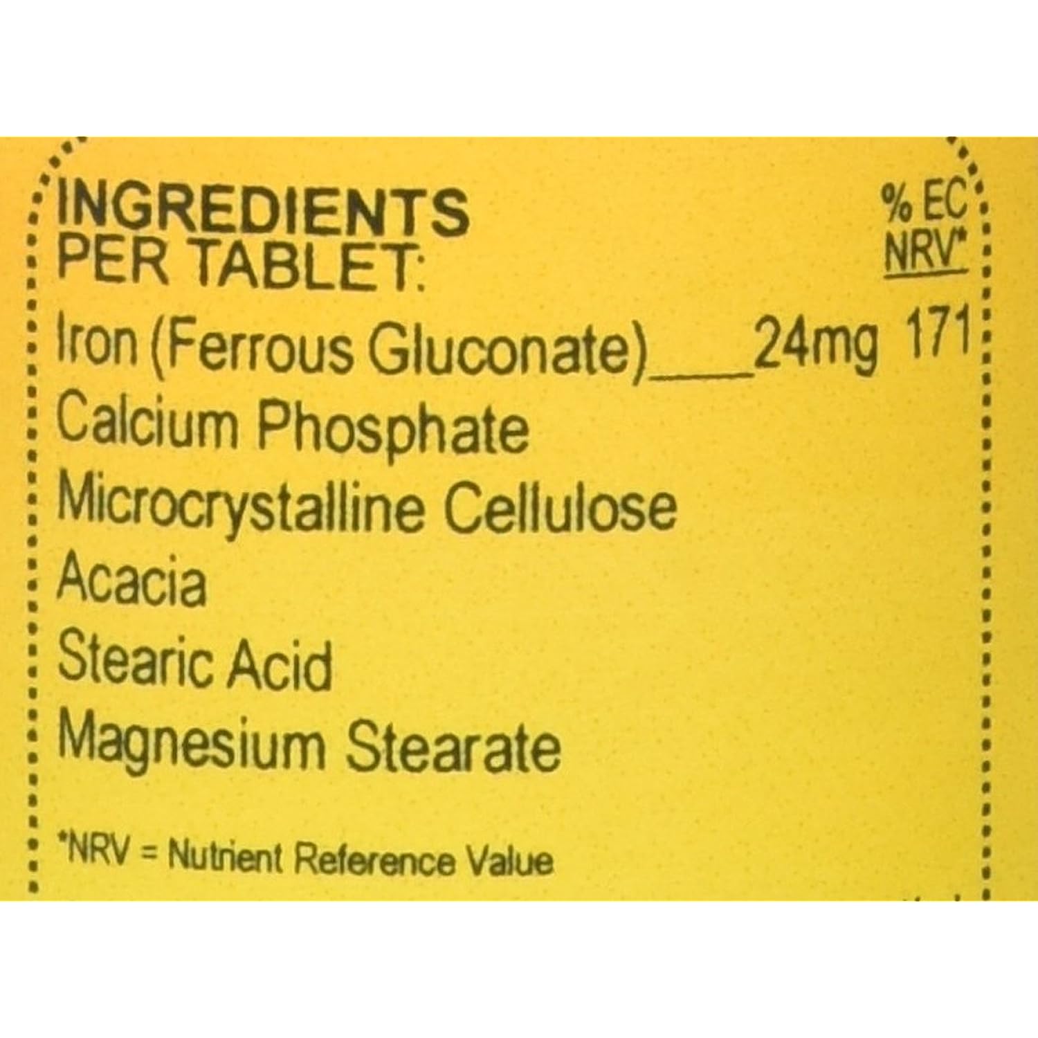 IngredientsIron (Ferrous Gluconate) - 24mg Calcium Phosphate Microcrystalline Cellulose AcaciaStearic Acid Magnesium Stearate.