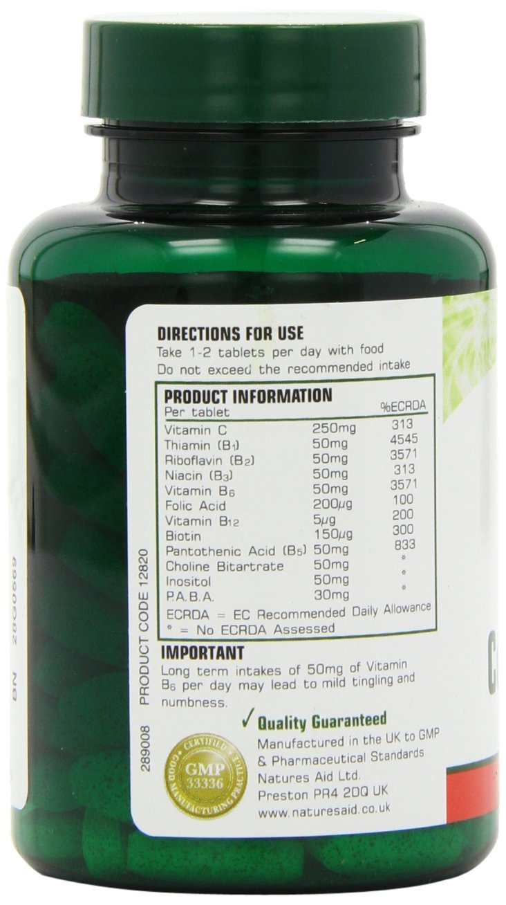 Natures Aid Vitamin B Complex provides a source of B vitamins to support normal energy yielding metabolism and the reduction of tiredness and fatigue. The normal functioning of the nervous system. Free from artificial flavours, colours and preservatives. Available in 90 tablets.