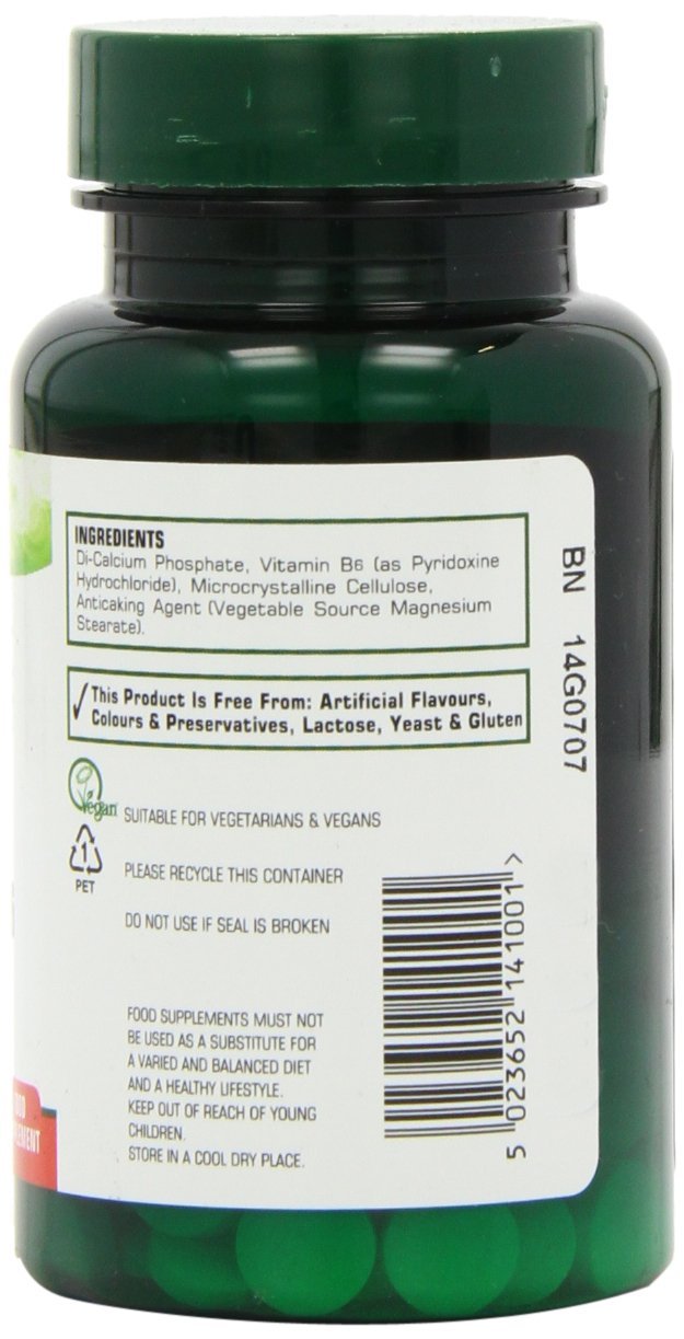 Natures Aid Vitamin B6 tablet provides 100 mg vitamin B6 (Pyridoxine). Vitamin B6 is one of many B-Vitamins. It contributes to the reduction of tiredness and fatigue and helps the regulation of hormonal activity. It also contributes to normal energy-yielding metabolism, normal functioning of the nervous system, normal psychological function and normal function of the immune system.
