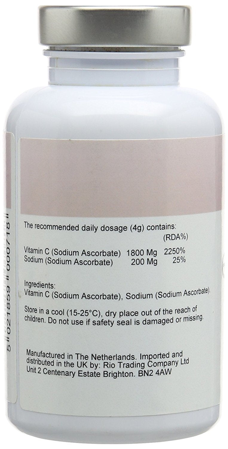 IngredientsVitamin C (Sodium ascorbate) 3,778mg (4,723% RDA), Sodium (Sodium ascorbate) 222mg (11% RDA).