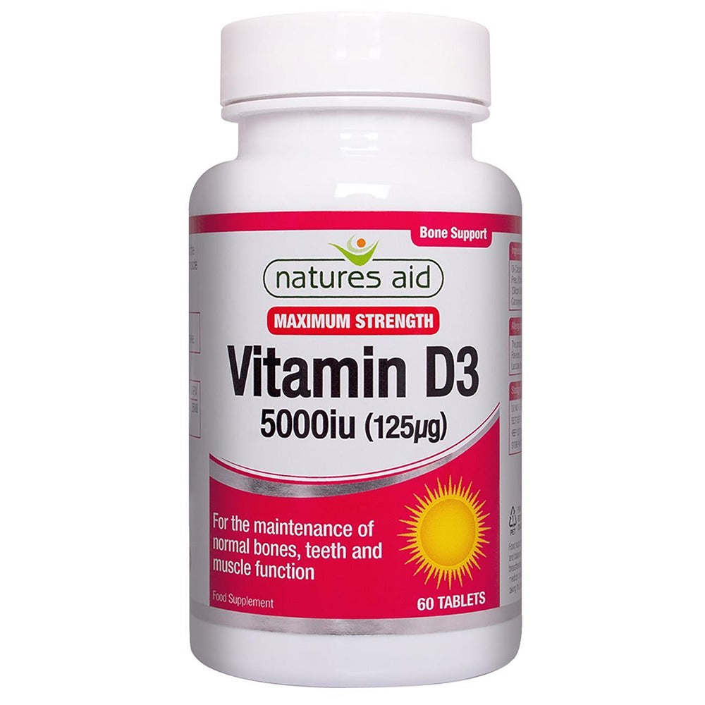 Natures Aid 5000iu (125ug) Vitamin D3 contributes to the maintenance of normal bones, teeth, muscle function. Vitamin D plays a role in the process of cell division and is helpful in the normal absorption and utilisation of calcium and phosphorus. It helps to maintain normal blood calcium levels. It helps to reduce the risk of falling associated with postural instability and muscle weakness. Free from artificial flavours, colours and preservatives.
