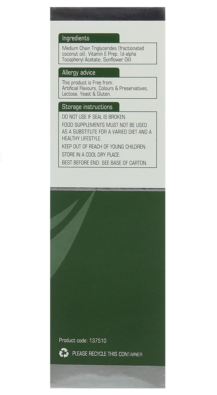 IngredientsMedium Chain Triglycerides (fractionated coconut oil), Sunflower oil.