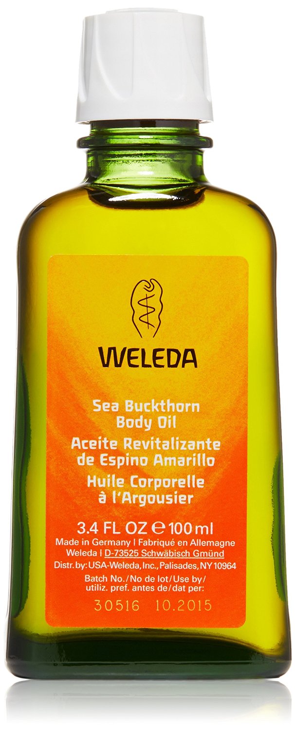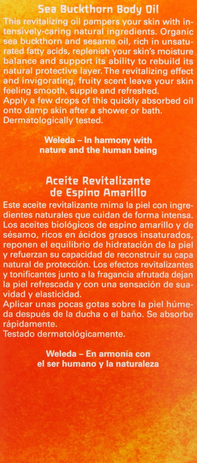Weleda Sea Buckthorn Replenishing Body Oil is a light touch of golden richness for thirsty skin. Pressed from sun-ripened fruits and seeds, sea buckthorns oils invigorate and nourish dry skin. In the thin, dry air of mountains and high, arid places, sea buckthorn stores energy and nutrition within its small, red-gold fruit. The organic oil we press from flesh and seeds is intensely nourishing, rich in unsaturated fatty acids and vitamins and naturally compatible to be readily absorbed into skin. We blend it with light, easily absorbed sesame oil and fresh-fragrant essential oils, bringing golden radiance and smoothness to your body. Suitable for vegans. New-look pump dispenser bottle.