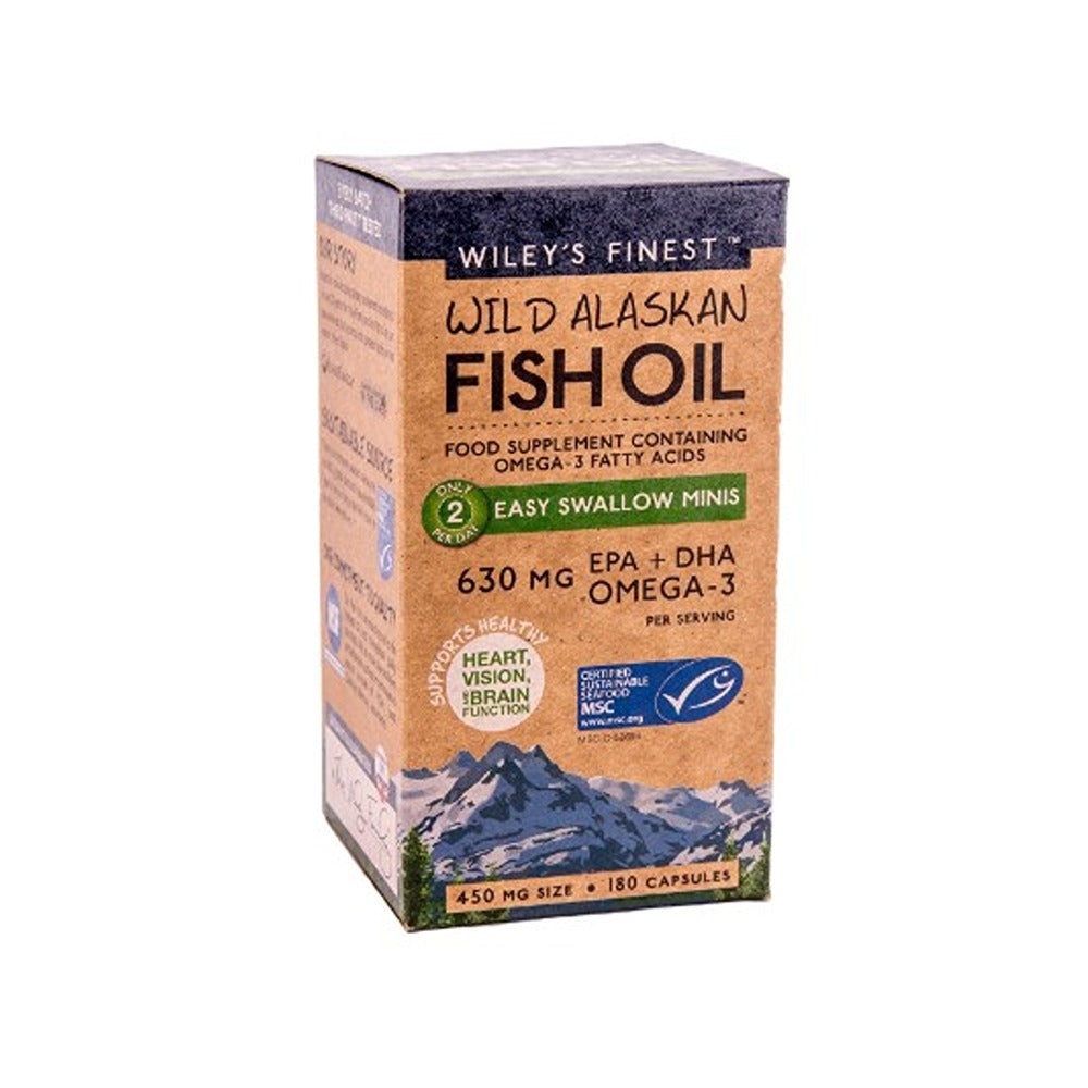 Wiley's Finest Wild Alaskan Fish Oil comes in an easy swallow minis softgel. It may reduce the risk of coronary heart disease. Formulated with the great balance of EPA and DHA in each serving. 55 Percent smaller than regular strength fish oil soft gel. Made at family owned and operated cGMP Refinery. Available 180 softgels in a bottle.