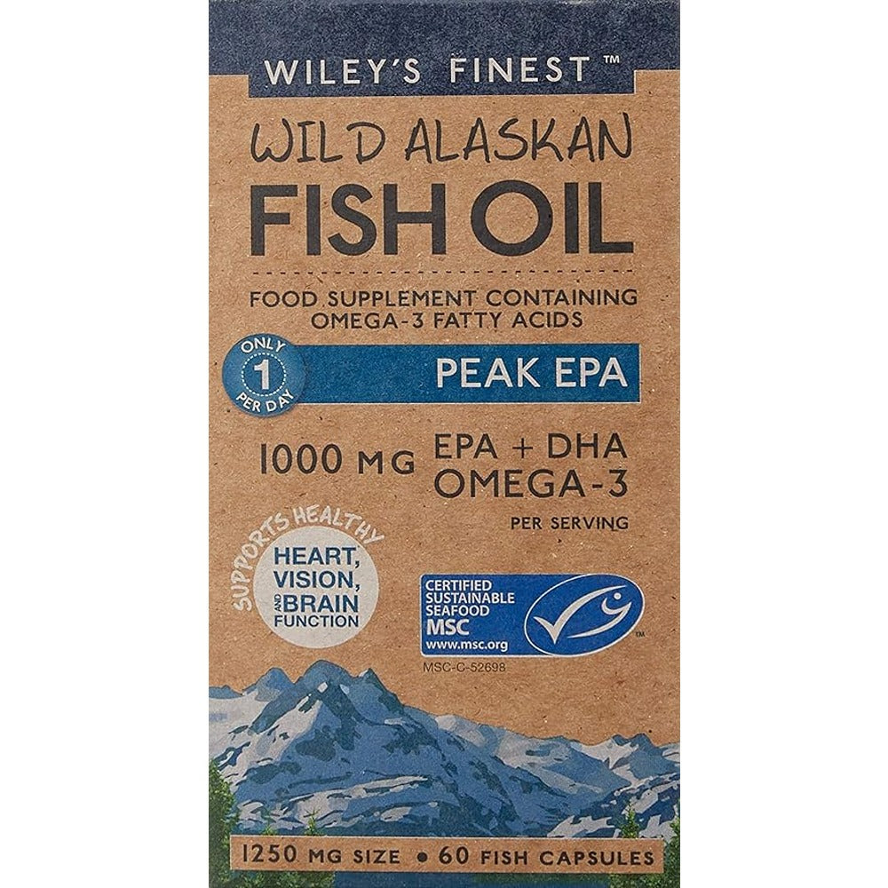 The Wiley's Finest Wild Alaskan Fish Oil Peak EPA Softgels purified and concentrated to provide a peak dose of EPA in every softgel. Peak EPA is clinically proven to increase Omega-3 levels in human muscle tissue and red blood cells.